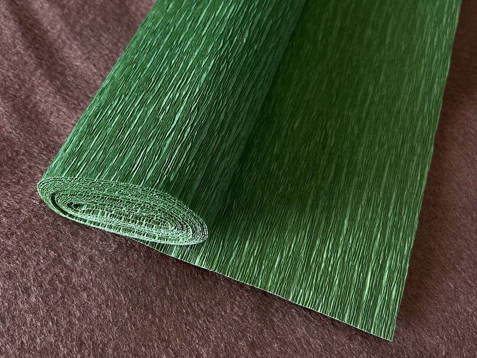 Гофра бумага (креп)-используется в качестве упаковочного материала. Её использовают во флористики и создании букетов из конфет. Хорошо поддается обработке и обладает достаточной плотностью. Цвета в ассортименте. Размер листа:0,5*2,5 метра. Цвет-тёмно зеленый