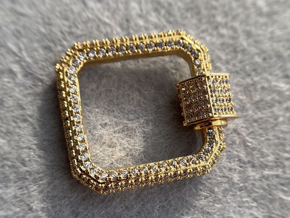 Родированный замочек для бижутерии " Квадрат", с инкрустацией фианитами. Замок двухсторонний.