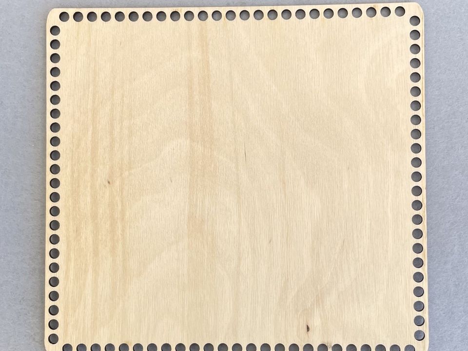 Донышко для сумок. Изготовлено из отшлифованной светлой фанеры толщиной 4 мм, имеет квадратную форму размером 25 см. Его использование сделает ваше изделие более устойчивой, при этом существенно сократив расход пряжи. Также подходит для изделий из кожи.
