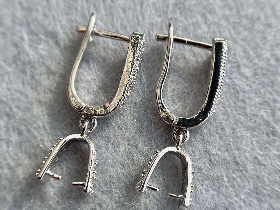 с зажимом для подвесок Сваровски. Инкрустированы фианитами.