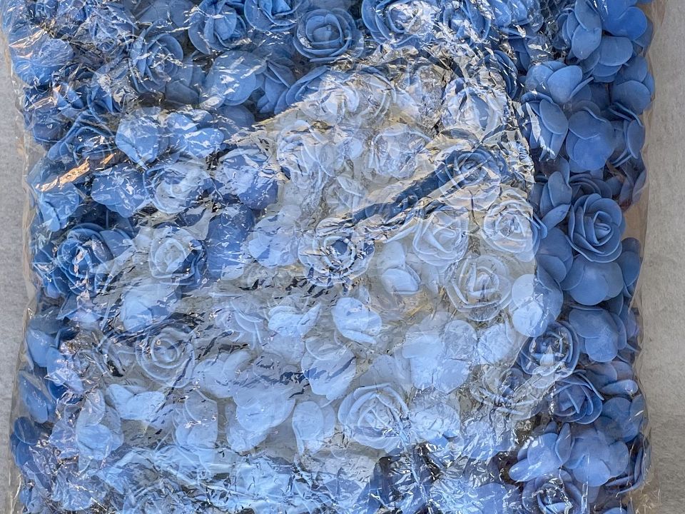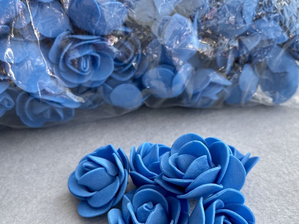 Розы из фоамирана Ø3,5-4см. Упаковка: 500 шт. Цветы из фоамирана легко расправляются с помощью пара или фена. Размер упаковки:30*30см. Цвет-синий