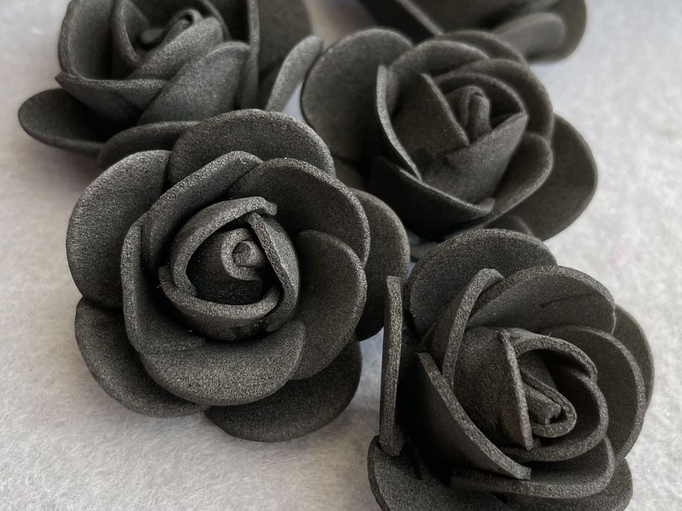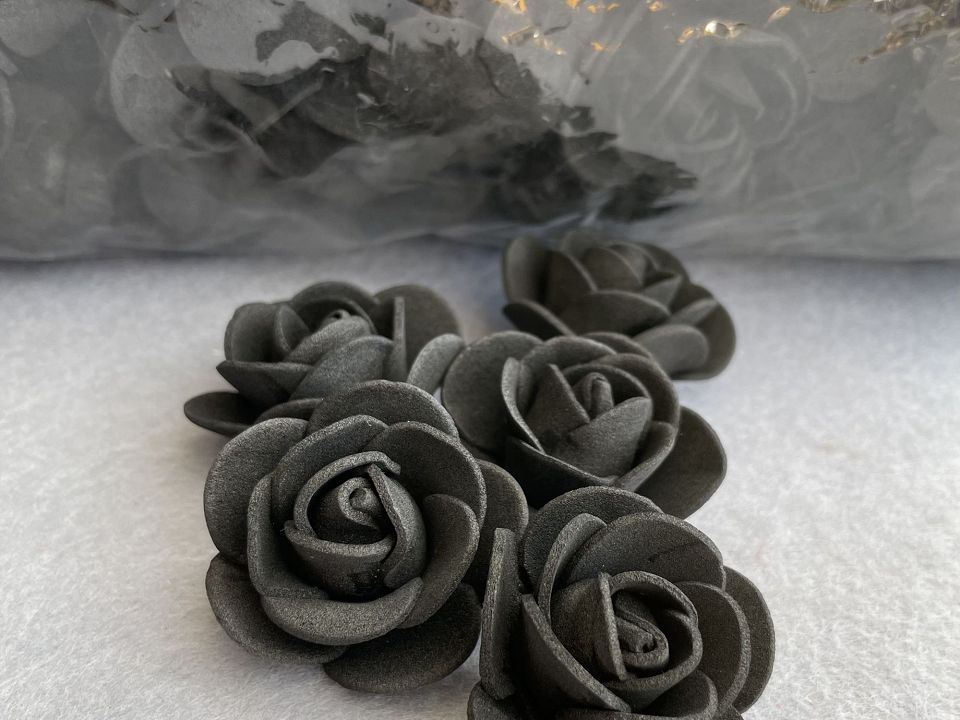 Розы из фоамирана Ø3,5-4см. Упаковка: 500 шт. Цветы из фоамирана легко расправляются с помощью пара или фена. Размер упаковки:30*30см. Цвет-черный
