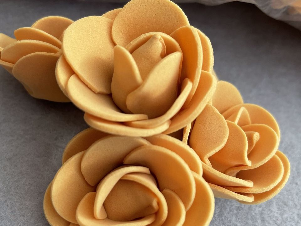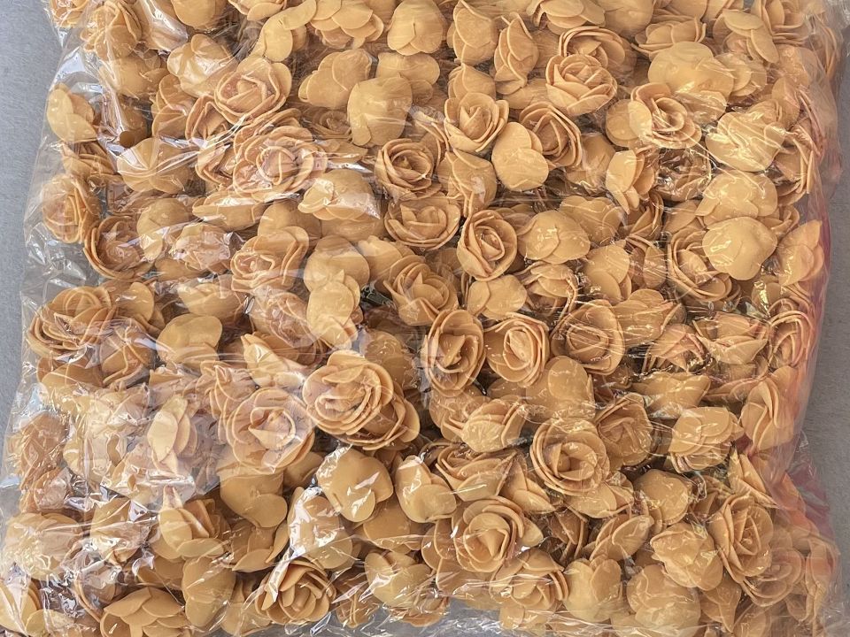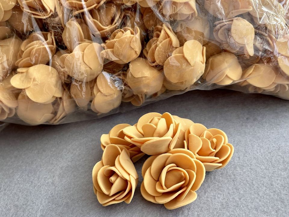 Розы из фоамирана Ø3,5-4см. Упаковка: 500 шт. Цветы из фоамирана легко расправляются с помощью пара или фена. Размер упаковки:30*30см. Цвет-горчичный