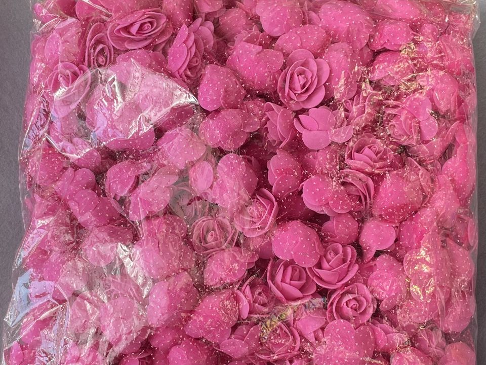 Розы из фоамирана с фатином Ø3,5-4см. Украшены Упаковка: 500 шт. Цветы из фоамирана легко расправляются с помощью пара или фена. Размер упаковки:30*30см. Цвет- малиновый