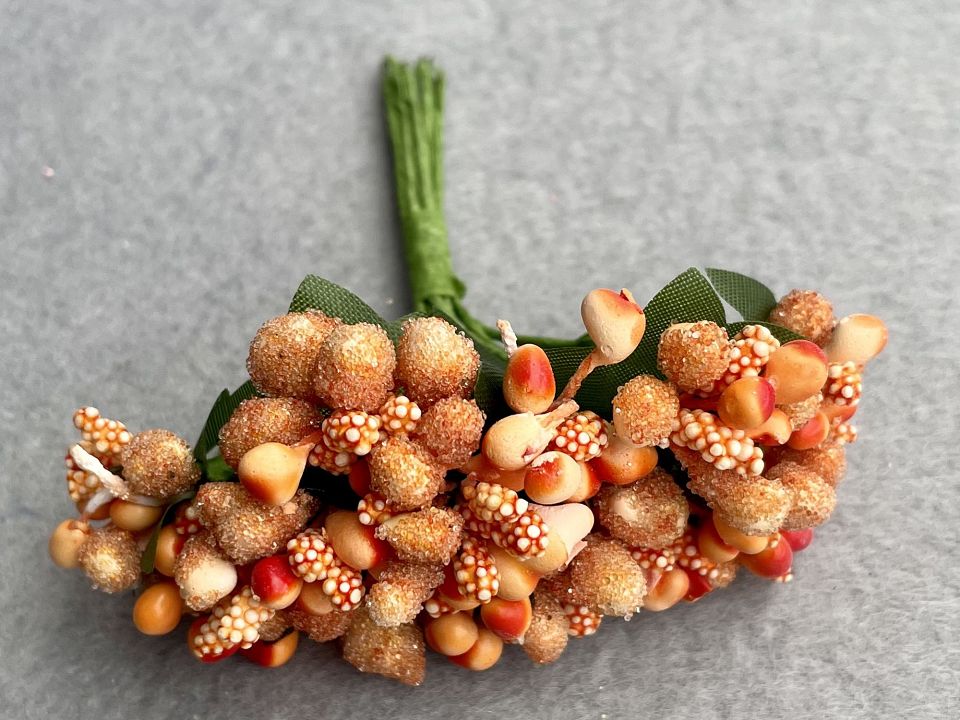 Тычинки "кашка" Размер тычинки с проволкой:~9-10см. В одном букете-12 тычинок. Тычинки используются при декорировании ободков и различных заколок. Цена за упаковку-12 букетов.