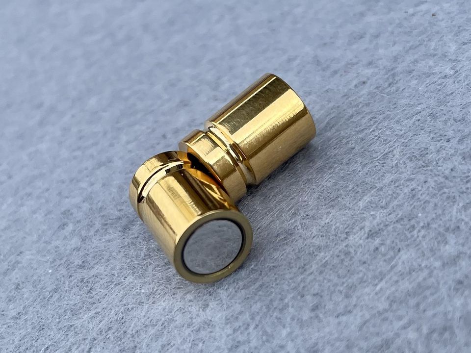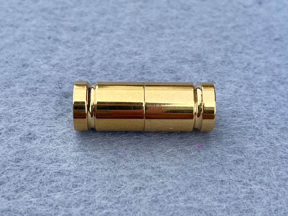 Замок магнитный для кожаных браслетов.Покрытие родий.Цвет-золото. Размер: 2,2см*0,8см,размер отверстия-5 мм.Цена за 1шт