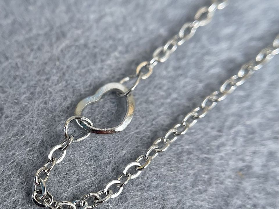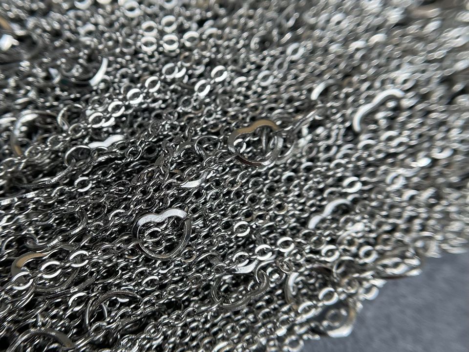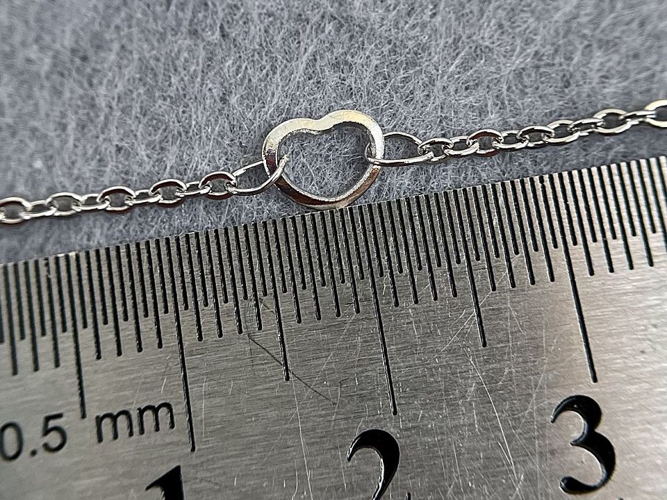 Цепь изготовлена из нержавеющей стали. Размер звена 2 мм,размер сердца-6мм. Сердца расположенны через каждые 5 см.
