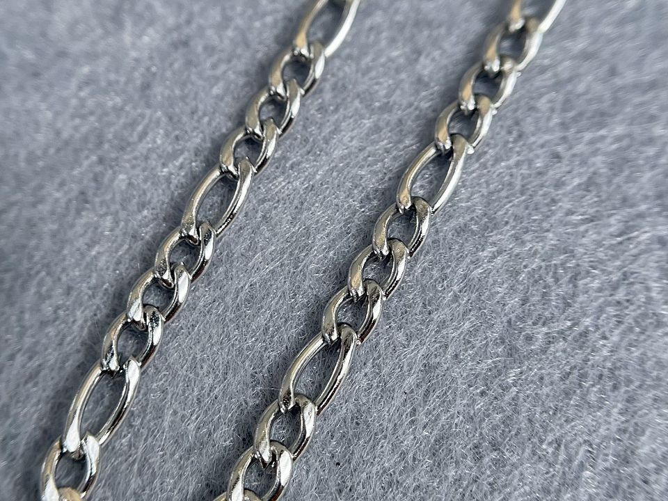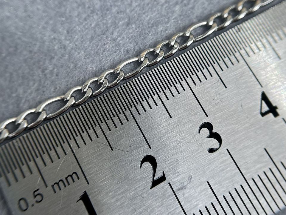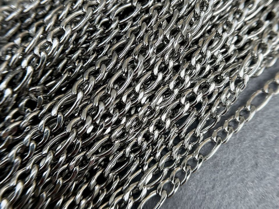 Цепь изготовлена из нержавеющей стали. Размер мелких звеньев-4 мм,крупных-6мм.