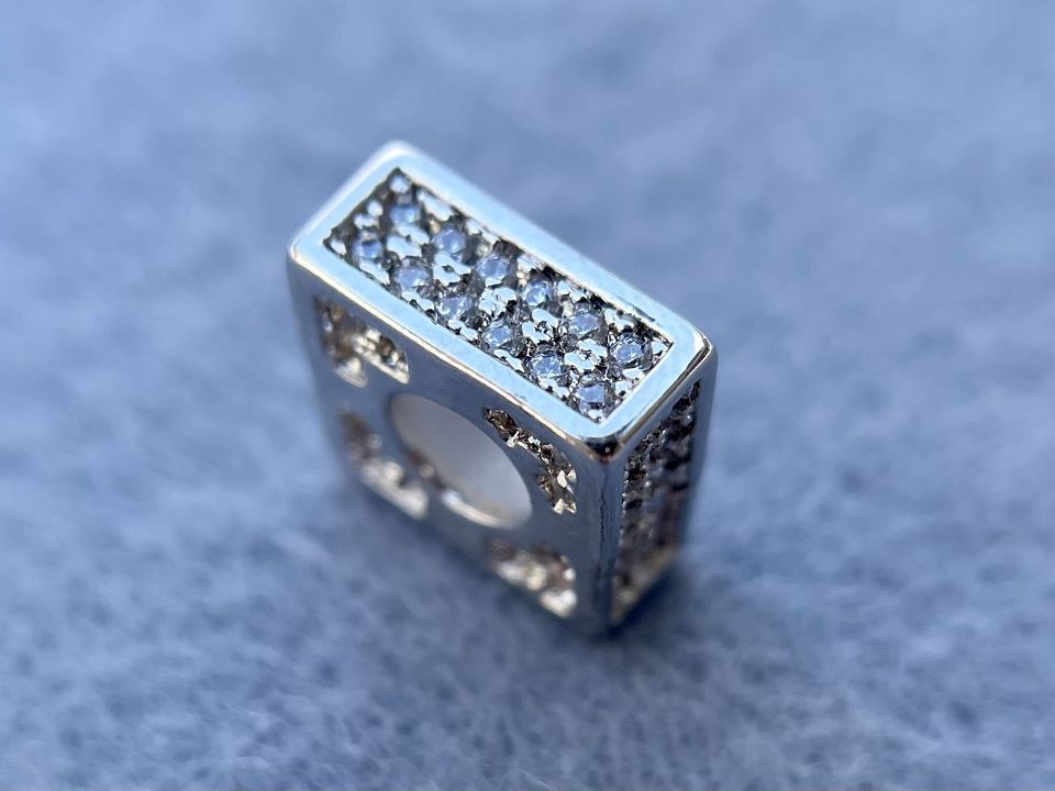 Бусина двухстороняя,инкрустирована Кубическим цирконием (также называются бусинами с фианитами)