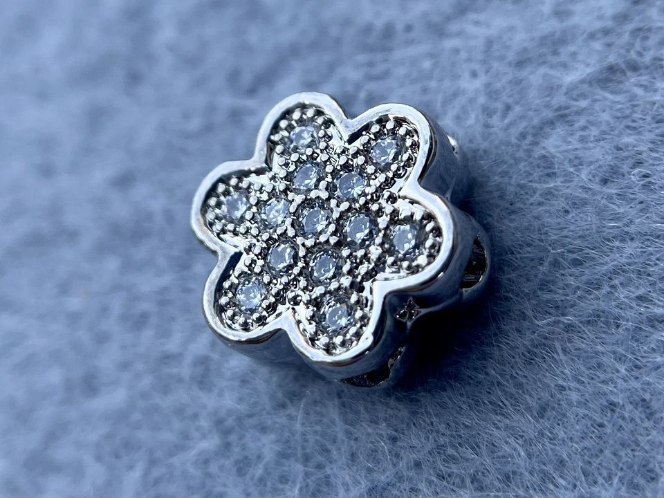 Бусина инкрустирована Кубическим цирконием (также называются бусинами с фианитами)