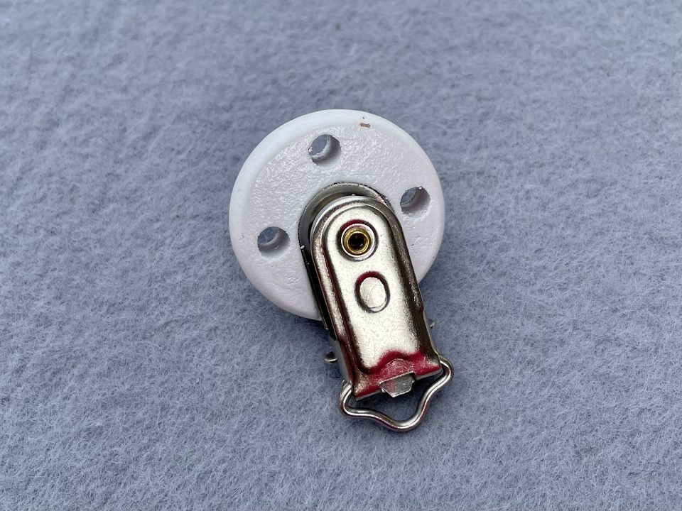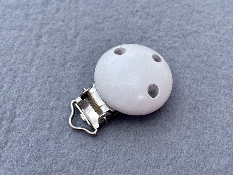 Зажимы-клипсы для держателей пустышек, грызунков, подвесок. Механизм: металл и пластик. Декор - деревянная "пуговка" диаметром 30 мм. Размер всего зажима 30х45 мм. Цена за 5шт (можно разных цветов)
