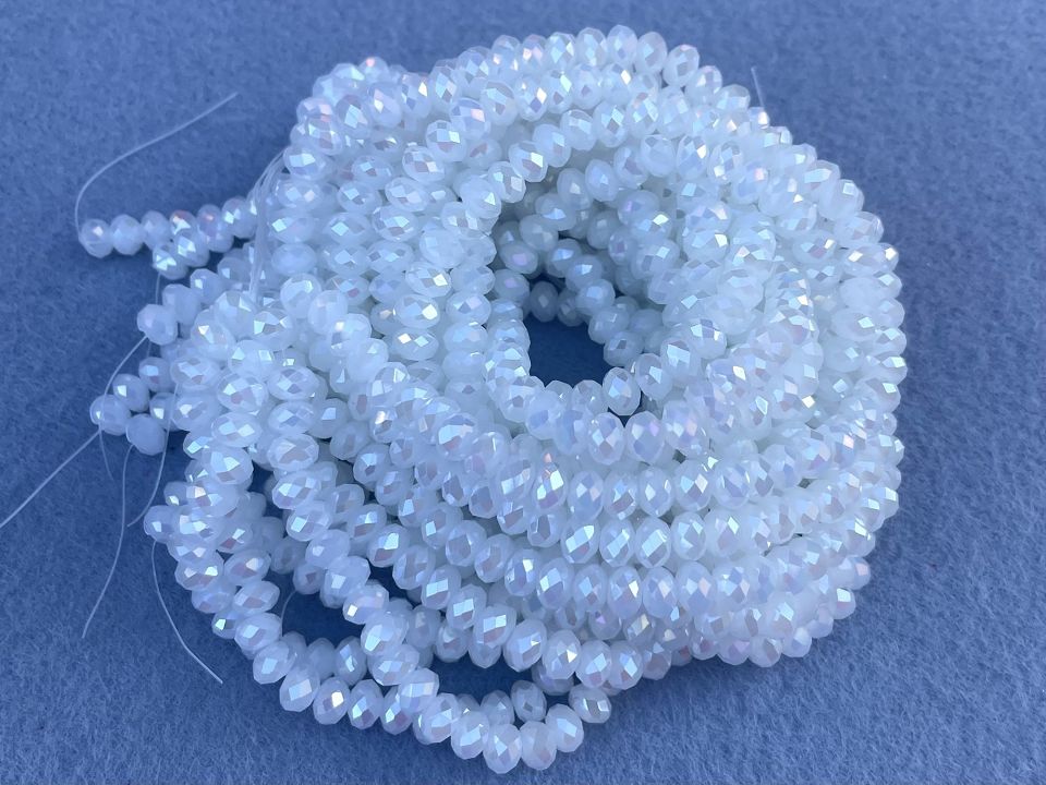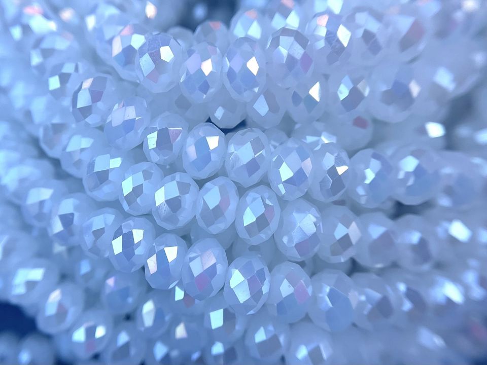 Хрустальные бусины, гранёные. Размер :6*5мм, отверстие : 1мм. Форма: рондель,сфера . В нитке: 90 +-3шт. Цена за 1 нитку.