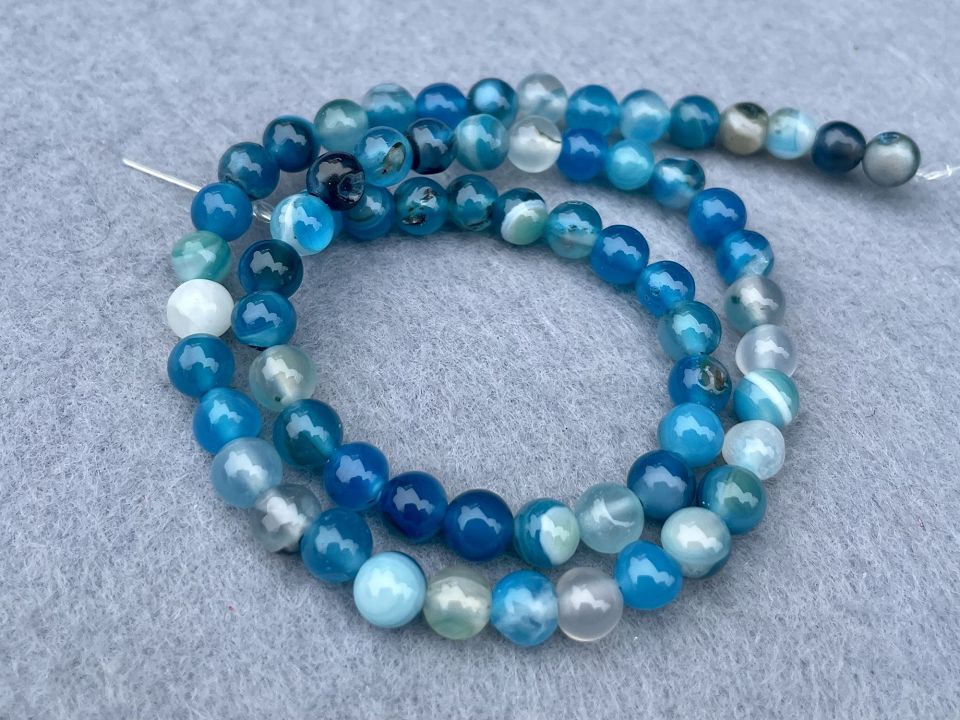 Агат-прессованный,гладкий. Размер бусины: 6мм. Цвет-голубой. Количество бусин на нитке : 65 (+-2шт). Отверстие камня: 1мм. Цена за нить (без замочка).