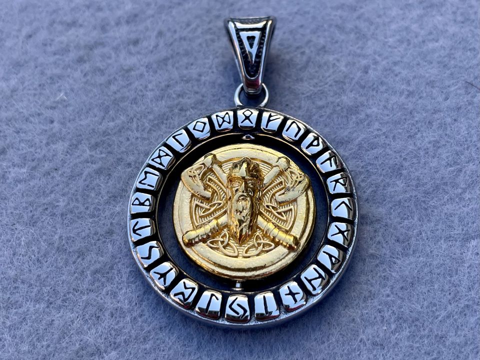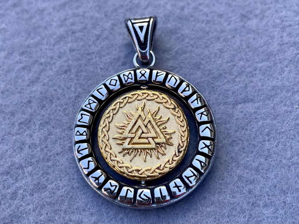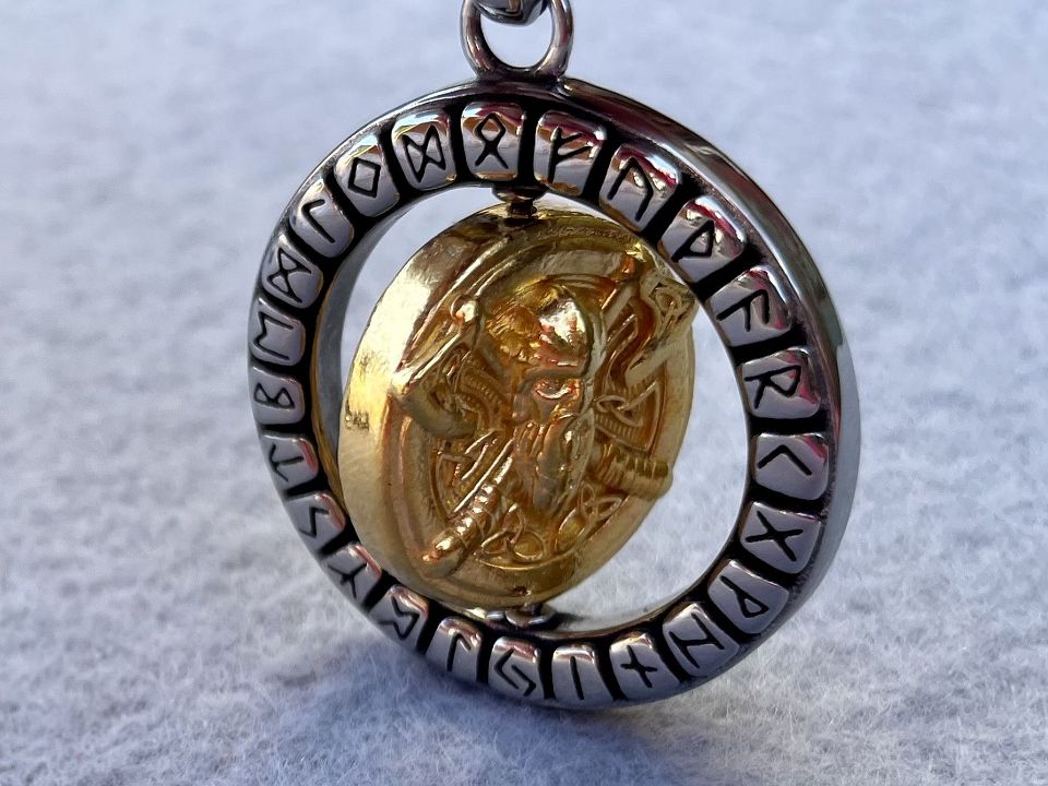 Цвет- сталь с позолотой. Кулон с крутящимся средним элементом.