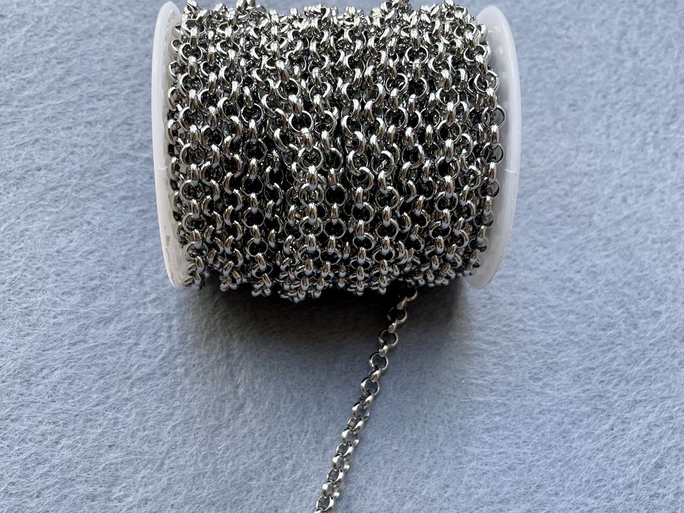 Цепь изготовлена из нержавеющей стали. Размер звена 5 мм,толщина 1,5мм. Звенья разъемные. Цена указана за 10 метров. Цвет : сталь.