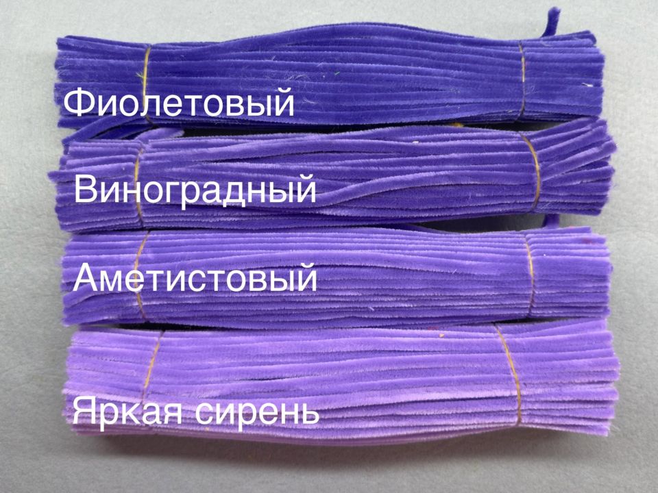 Синельная проволока - это тоненький металлический стержень, покрытый ворсистым материалом. Легко сгибается и принимает нужную форму. Используется для формирования каркасов игрушек, для декорирования и изготовлению различных поделок и фигурок. Цвет - фиолетовый.