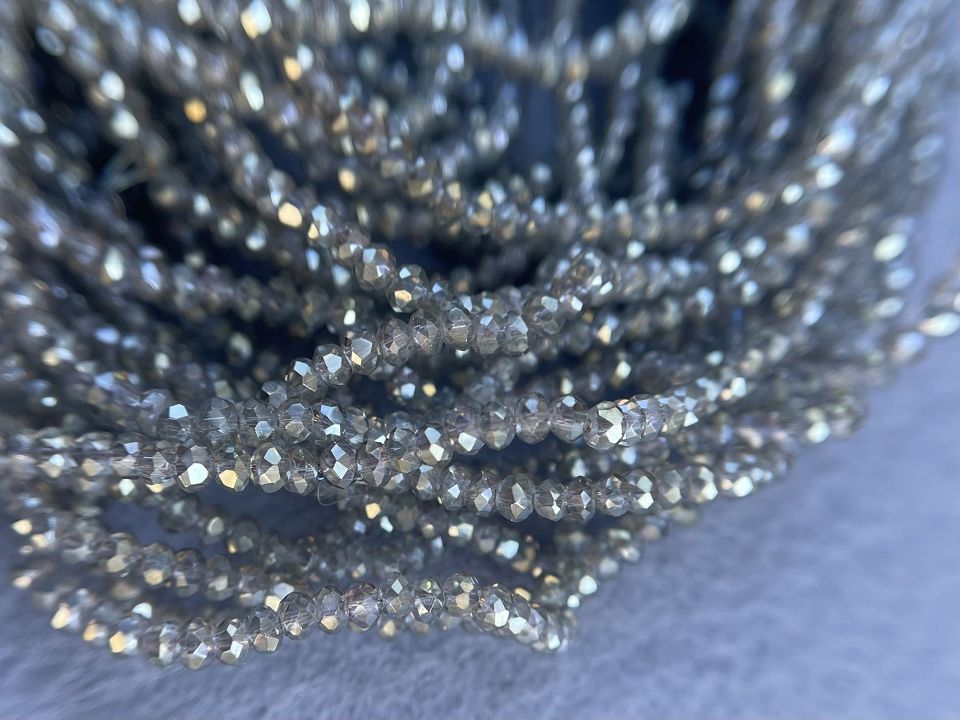 Хрустальные бусины, гранёные. Размер :2*3мм, отверстие : 1 мм. Форма: рондель,сфера . В нитке: 160+-3шт. Цена за 1 нитку.