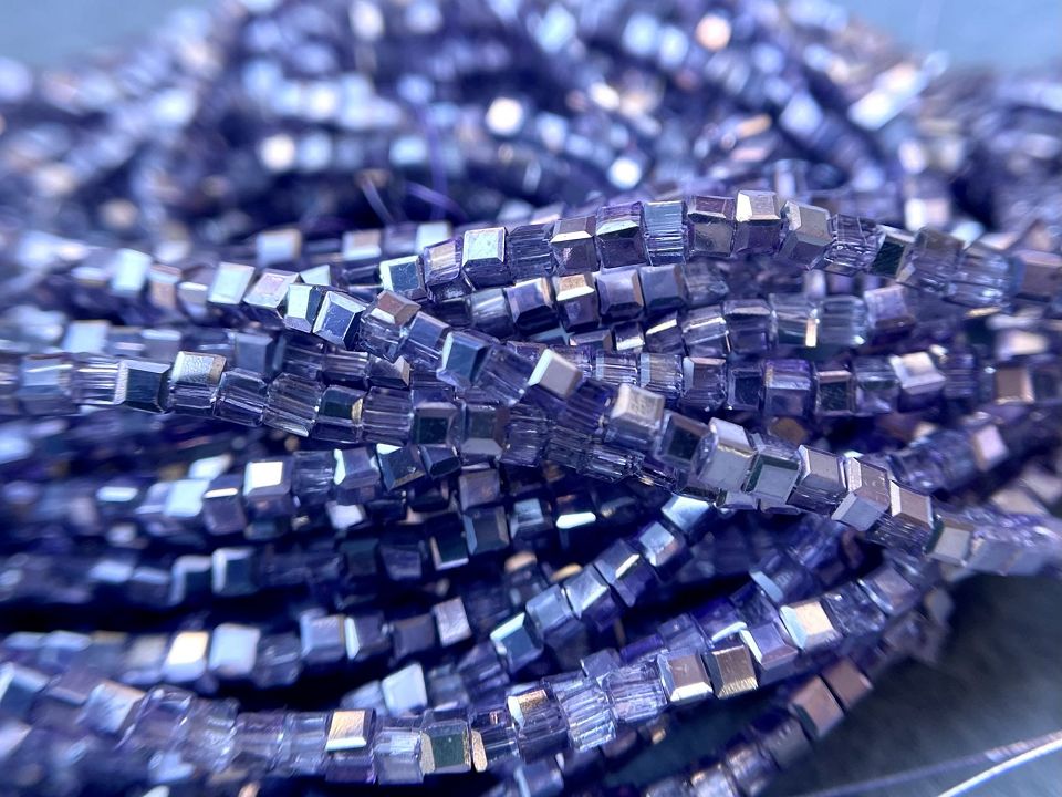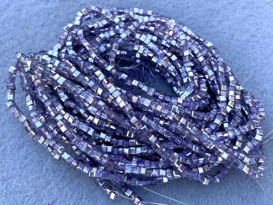 Хрустальные бусины, гранёные. Размер : 2мм, отверстие : 0,8мм. Форма: кубик. В нитке: 190+-5шт. Цена за 1 нитку.