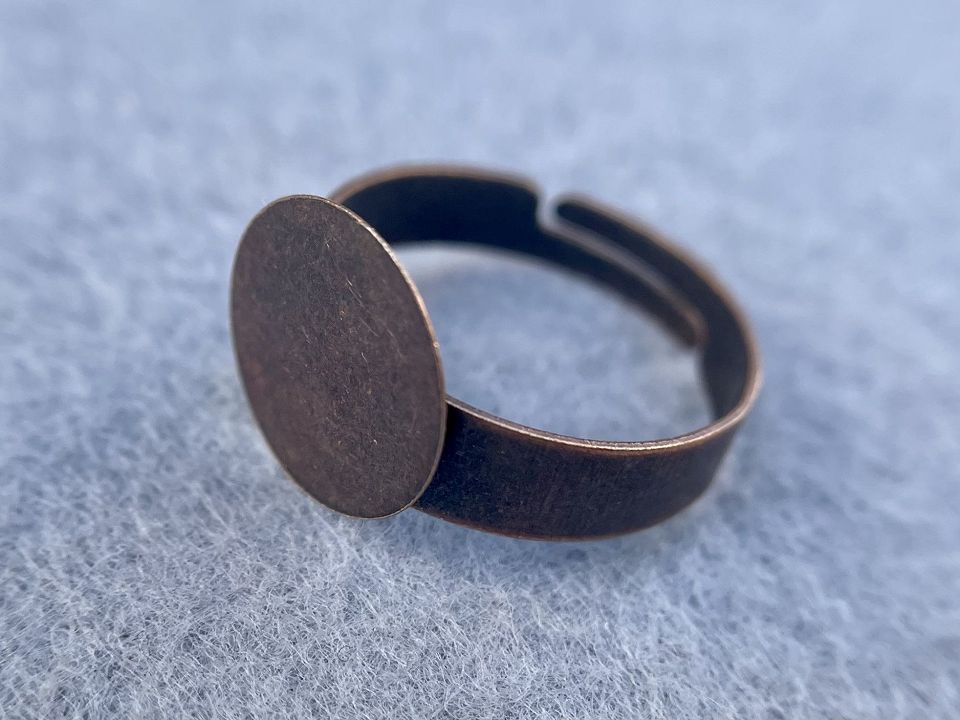 Основа для кольца из металлического сплава, с основой 12мм. Диаметр кольца :17мм и расширяется на пару размеров. Цвет:медь, цена за 1шт.
