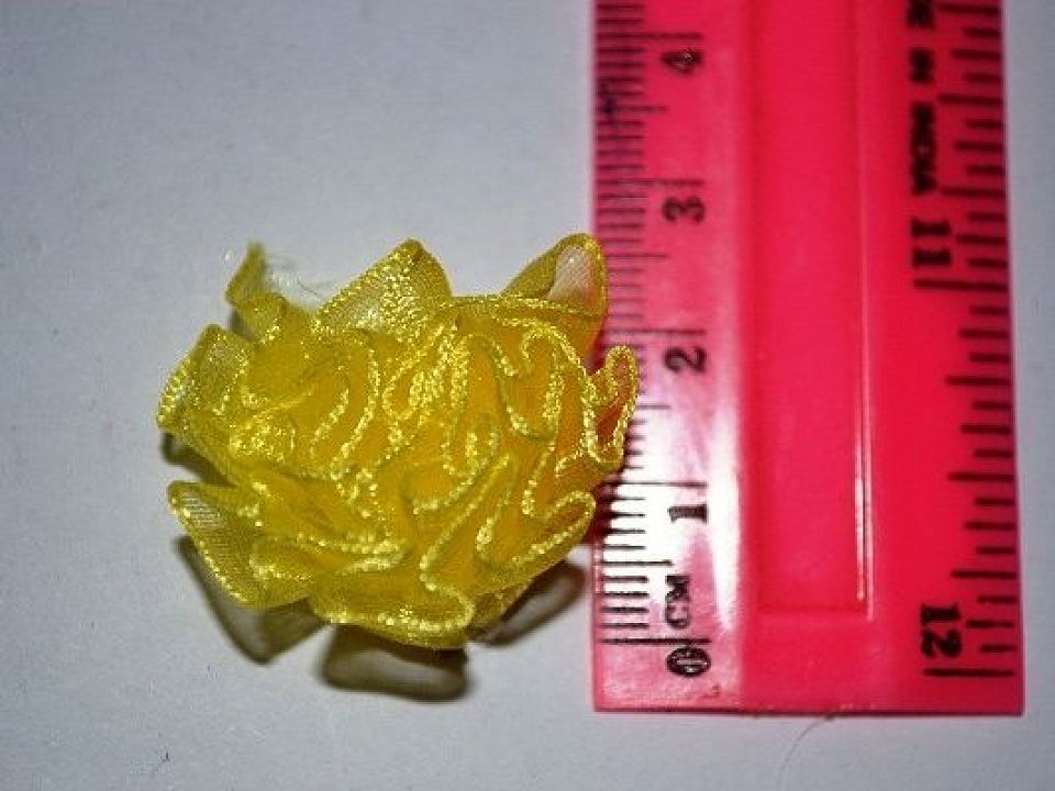 Цветок из органзы используются для декорирования любой вашей работы. Диаметр цветка 28мм, высота 10-12мм цвет желтый упаковка 10шт.