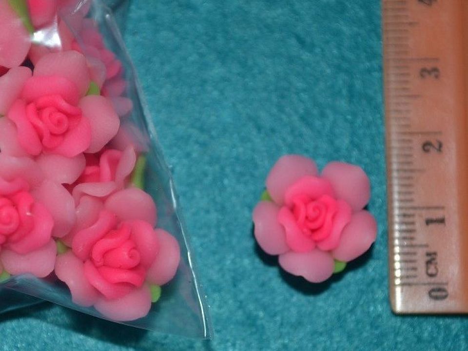 Бусины из полимерной глины. Форма:обьёмная роза. Размер бусины:15мм,отверстие:1*1.5мм. Цена указана за упаковку:20шт. Цветок можно нанизать на основу для браслета или приклеить на основу для колец. Так как это бусины ручной работы, то размер может варьироваться +-1 мм