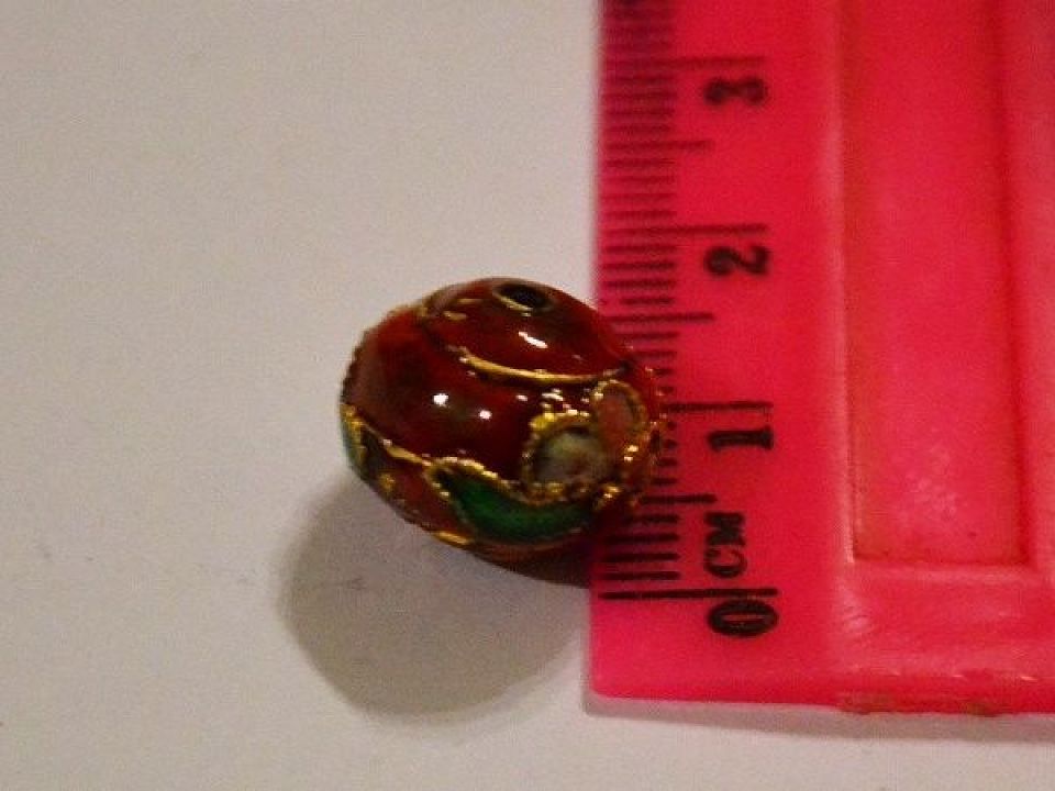 бусина металлическая изготовлена в технике Клуазоне с элементами эмали.