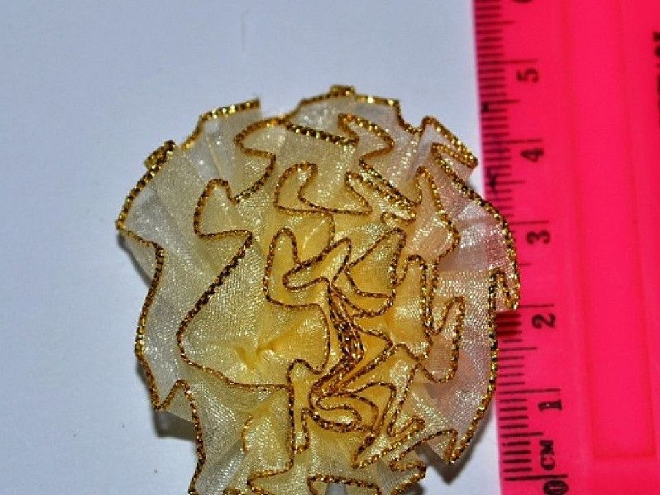 Цветок из органзы используются для декорирования любой вашей работы. Диаметр цветка 45мм, высота 12-15мм цвет лимонный упаковка 10шт.
