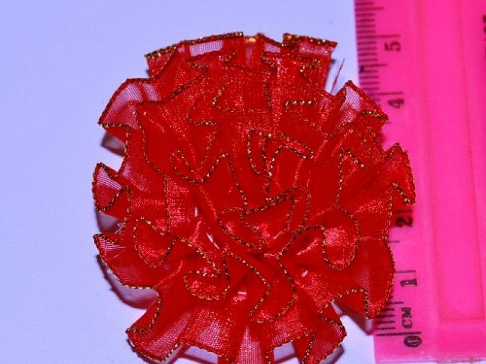 Цветок из органзы используются для декорирования любой вашей работы. Диаметр цветка 45мм, высота 12-15мм цвет красный упаковка 10шт.