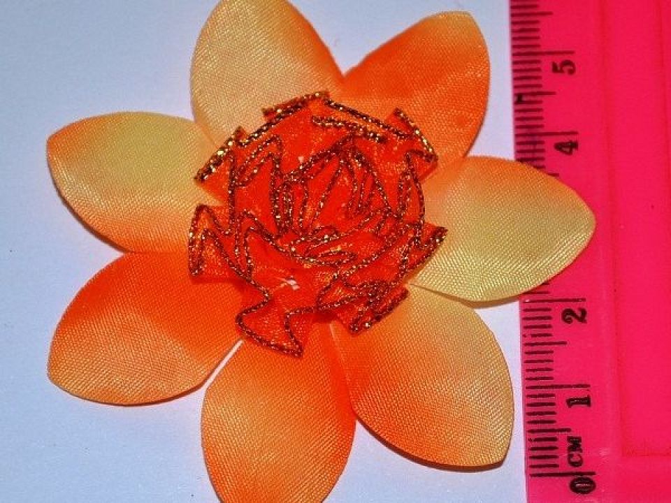 Цветок из органзы с лепестками используются для декорирования любой вашей работы. Диаметр цветка 45мм, высота 12-15мм цвет оранжевый упаковка 10шт.