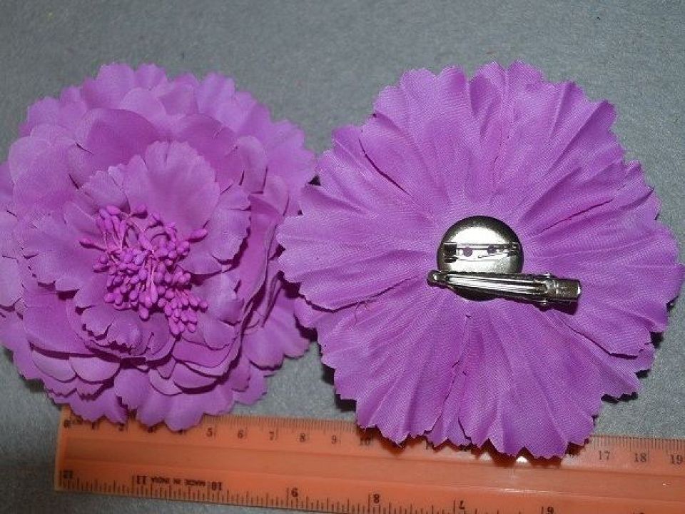 Цветок 2 в1, из ткани-украшен тычинками. Диаметр ~10-12см. Может использоваться как заколка ,так и как брошь. Цена за 1 шт