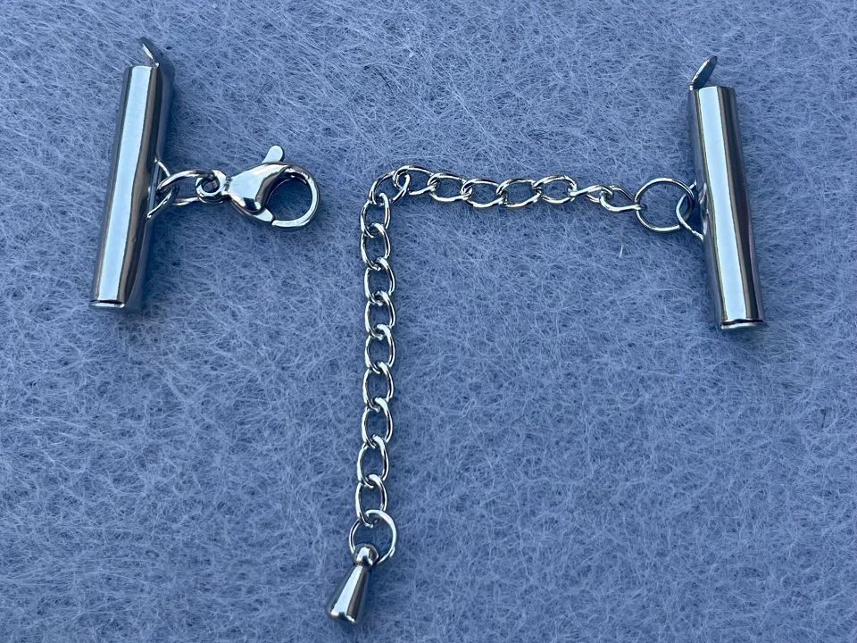 Застёжка с зажимом для бижутерии и удлинением из нержавеющей стали. В набор входит : зажим : 2см *0,4см; карабин : 1см; соединительные колечки : 5мм*2шт; удлинение - 5см.