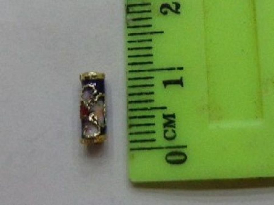 Бусина металлическая в виде трубочки изготовлена в технике Клуазоне с элементами эмали. Высота:10 мм, отверстие около 2 мм. Цена за 1 шт