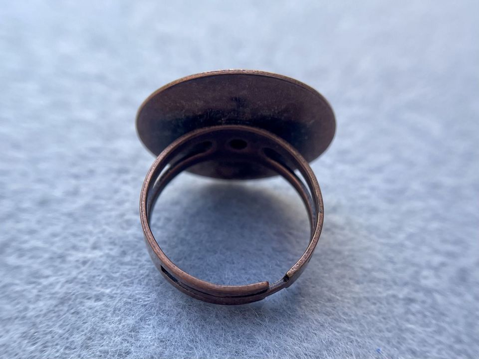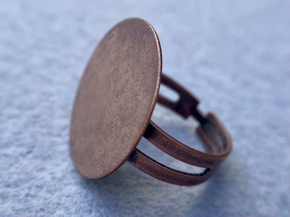 Основа для кольца из металлического сплава, с основой. Основа-22 мм. Диаметр кольца :17мм и расширяется на пару размеров. Цвет:медь, цена за 1шт.