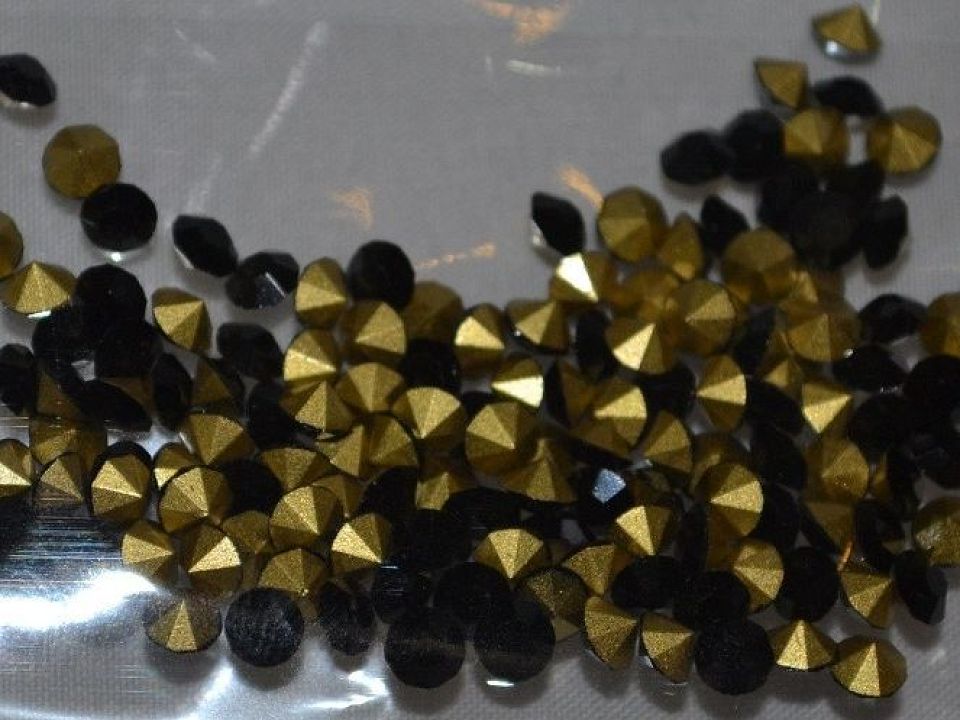 Ювелирные стразы с конусным дном изготовлены из стекла, SS 16 (3,8 - 4,0 мм). Цена за упаковку - 144шт.  Дно конусных страз имеет золотистое и шероховатое покрытие, благодаря чему стразы ярко сверкают и переливаются. Стразы конусные применяются в изготовлении ювелирных изделий, элитной бижутерии, в декоре одежды, обуви, различных предметов интерьера. Их вклеивают в готовые проемы либо вставляют в металлическую оправу (цапы).