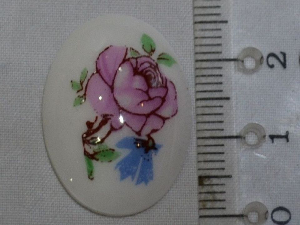 Кабошон фарфоровый с изображением цветов ~ 25*20мм. Форма овальная с плоским основанием. В Понятие "кабошон" входить любой декоративный элемент, что имеет плоскую "подошву" которой он приклеюеться или крепится к основанию. Это может быть декоративный элемент из стекла, пластика в форме круга или овала, цветы из смолы, акрила, полимерной глины. Широко використовуеться изготовлению кулонов, медальонов, брелков, колец, сережек, шпильок, так же подходит для украшения открыток.