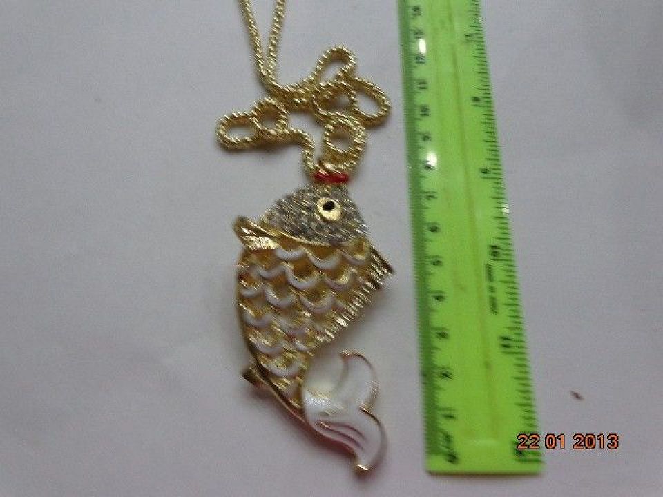 Кулон підвіска Золота рибка на ланцюзі в стразах.