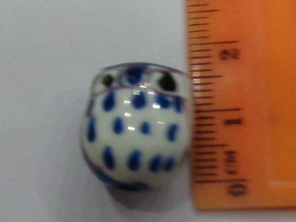 Фарфорова намистинка ручної роботи у вигляді сови з розписом по глазурі. Діаметр отвору: близько 2 мм. Ціна за 1 намистину.