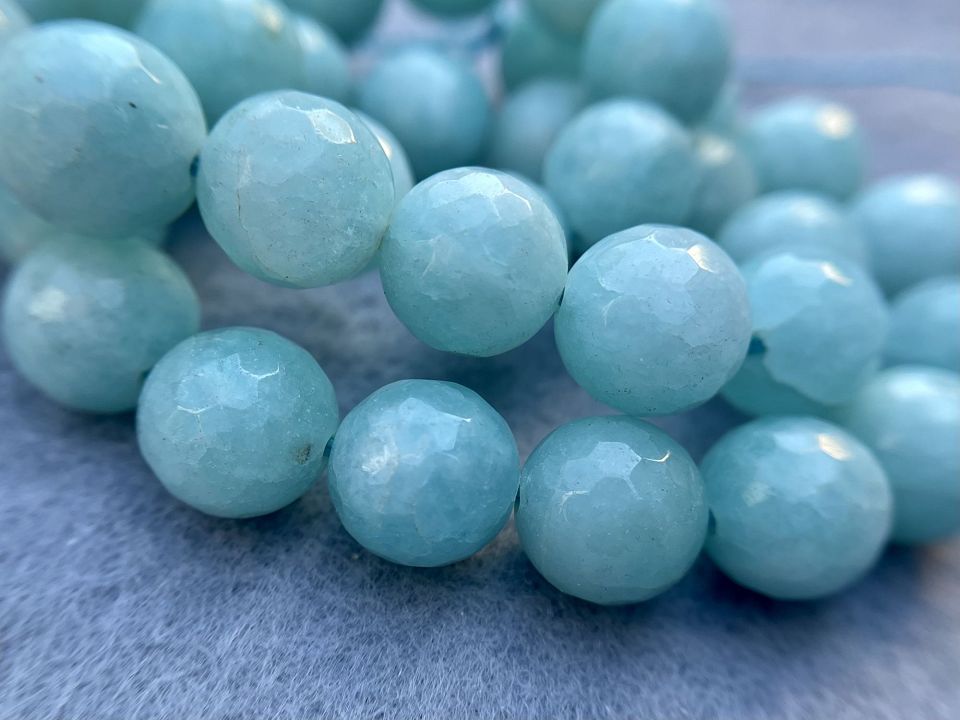 Аквамарин-натуральний, гранований. Розмір намистини: 10мм. Кількість намистин на нитці: 38 (+-2шт). Отвір каменю: 1мм. Ціна за нитку (без замку). Довжина нитки: 38см