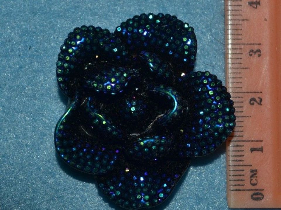 Пластиковий кабошон вигляді троянди, усипаний каменями має плоске (рівне) підстава. Розмір троянди 4см, підстава 2.5см. Використовується для прикрас бантів, шпильок і інших різних виробів
