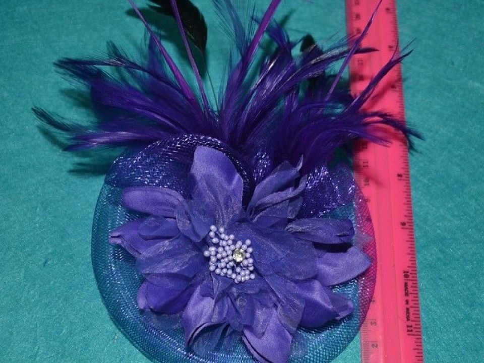 Квітка 2 в 1, з тканини-прикрашений тичинками і стразами, пір'ям і регіліном. Діаметр ~ 10-15см. Може використовуватися як шпилька або як брошку. Ціна за 1 шт