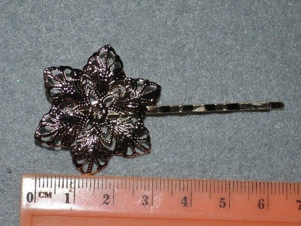 Основа шпильки, невидимка з філігранною базою для прикраси. Використовується для створення красивих аксесуарів для волосся. Колір-червоне золото, ціна за 10шт.