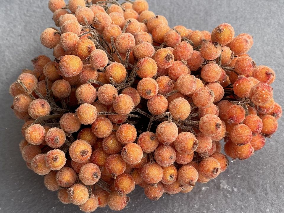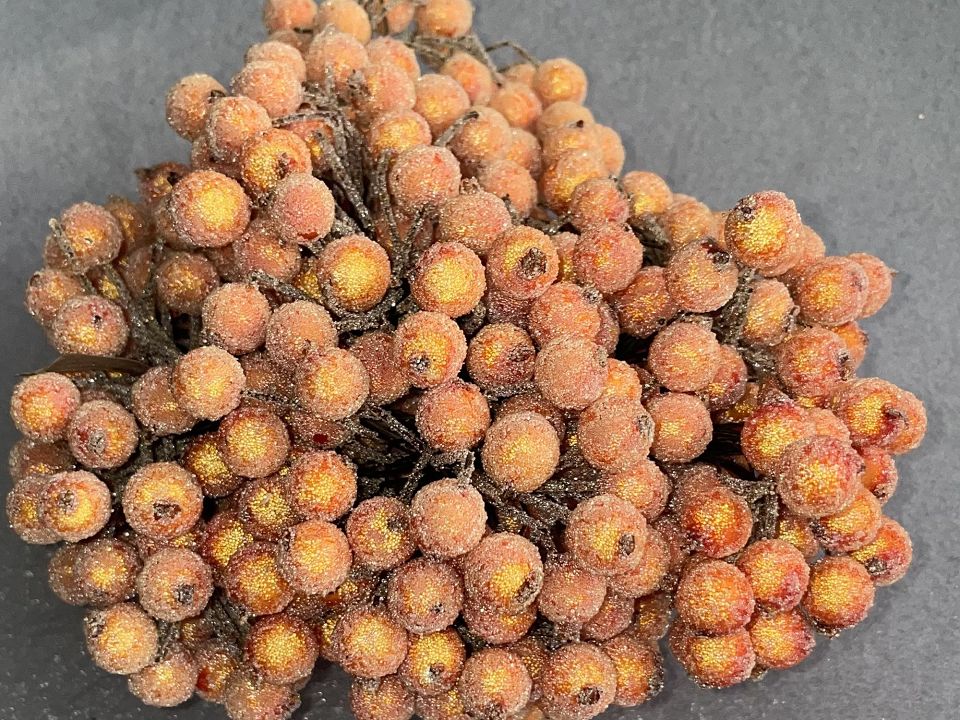 Довжина дроту 12 см, діаметр ягідки 12 мм. Довжина гілочки з ягідками 15см. У наборі 200 дротів, на кожній по 2 ягідки, всього 400 ягідок.