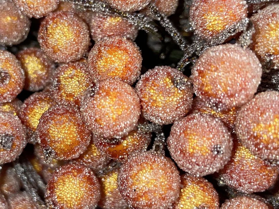 Ягідки зроблені з пінопласту кульки покритого шаром м'якого вінілу і кришталевої присипкою, що імітує лід.