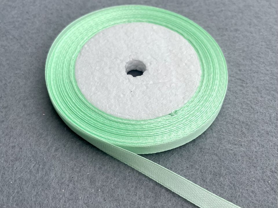 Стрічка атласна-ширина 6мм. У мотку ~23 метри. Колір-світло м'ятний. Застосовують для прикраси, оздоблення одягу, вишивання стрічками, плетіння стрічками тощо. Ціна вказана за 1 моток. Виробництво – Китай.