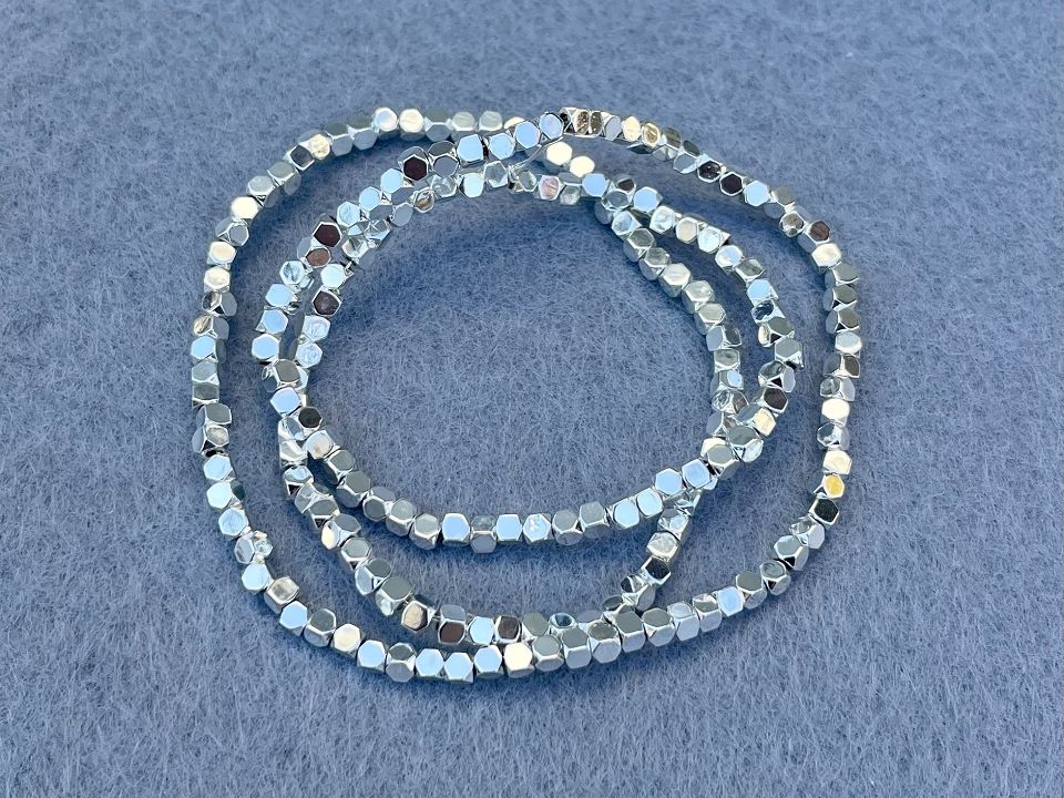 Гематит - натуральний, гладкий. Розмір намистини: 2*2 мм. Кількість намистин на нитці: 183 (+-2шт). Отвір: 1мм. Колір – срібло. Ціна за нитку.