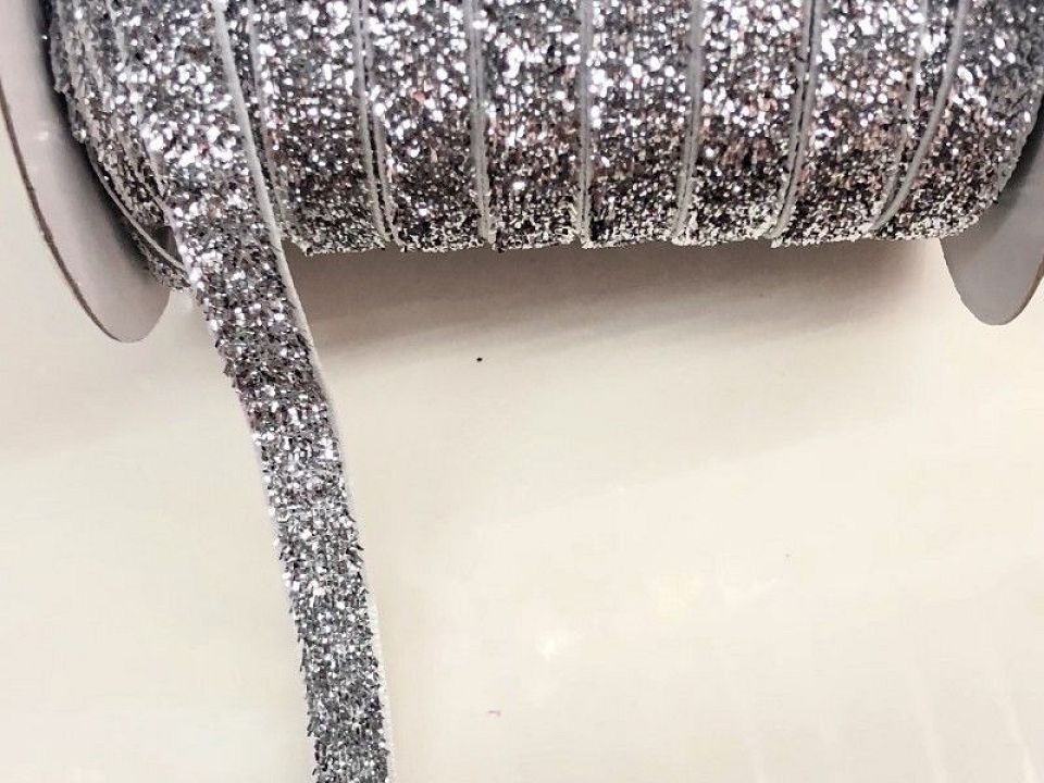 Стрічка велюровая.Діаметр -1 см, бабіна- (50 ярдів) ~ 46 метров.Цвет-срібло