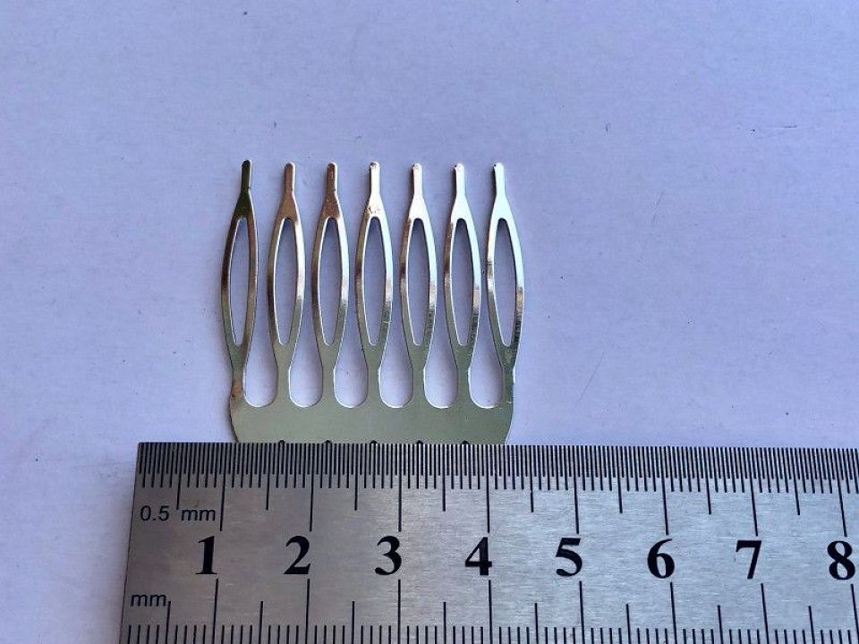 Гребінець металевий-довжина-3,5 см, висота-4см.Цвет-сталь, упаковка-100 шт