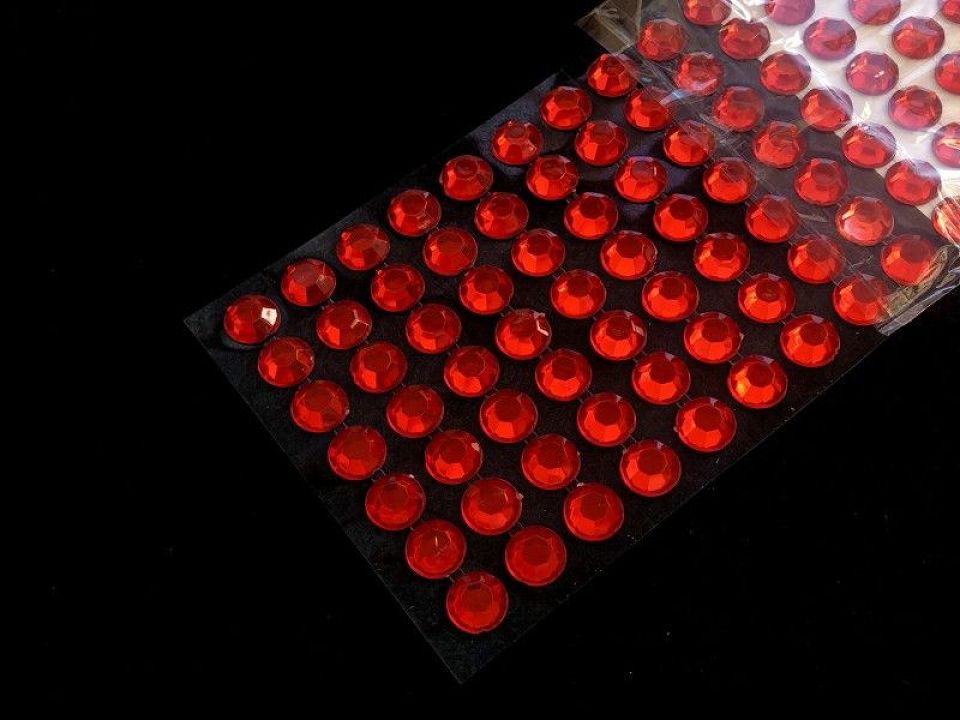 Декоративні стрази самоклеючі для дитячого творчества.Предназначенние для будь-яких твердих поверхностей.В упаковці 17дорожек по 7шт.Размер страз-12мм, колір-червоний червоний