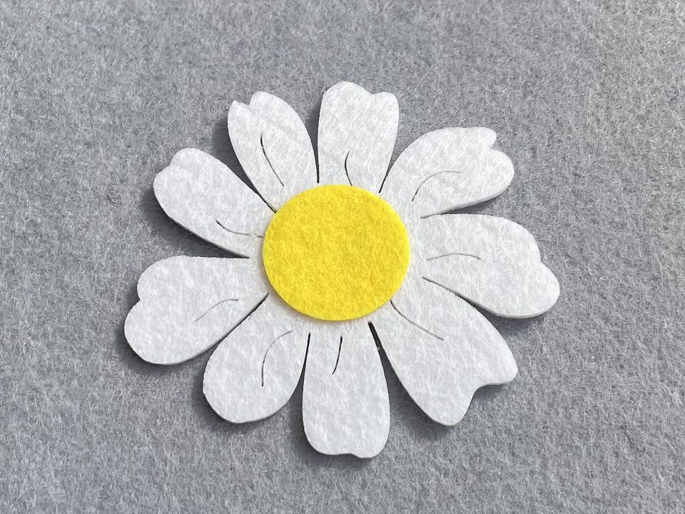 Аплікація з фетру <Ромашка> 7 * 7 см, товщина 2мм-упаковка 10шт. Ціна за упаковку.