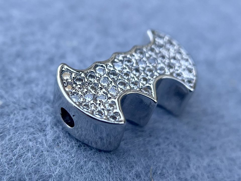 Бусина інкрустована Кубічним цирконієм (також називаються намистинами з фіанітами) Покриття родій Колір-сталь. Розмір: 8*13мм; товщина-4мм, отвір-2мм. Ціна за 1шт
